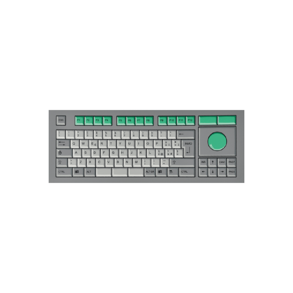 La tastiera a membrana compatta con trackpad E83M è disponibile in versione da pannello, da tavolo, e da retro pannello. Layout Nazionali: IT, US, SP.